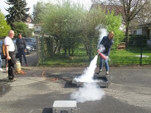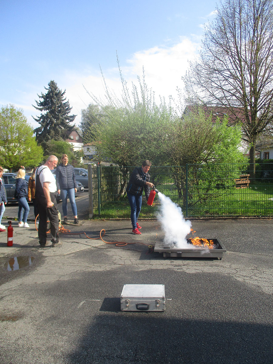 Herr Diederich vom Odenwälder Brandschutz Service GbR unterwies das AWO-Team am Montag, den 25.04.2022 nicht nur in der Theorie, sondern es ging vor dem Kindergarten auch richtig zur Sache. Jeder Mitarbeiterin wurde es ermöglicht, praktische Erfahrungen mit einem Feuerlöscher zu sammeln. Für die meisten Mitarbeiterinnen war der Umgang mit dem Feuerlöscher eine neue, aber wichtige Erfahrung.