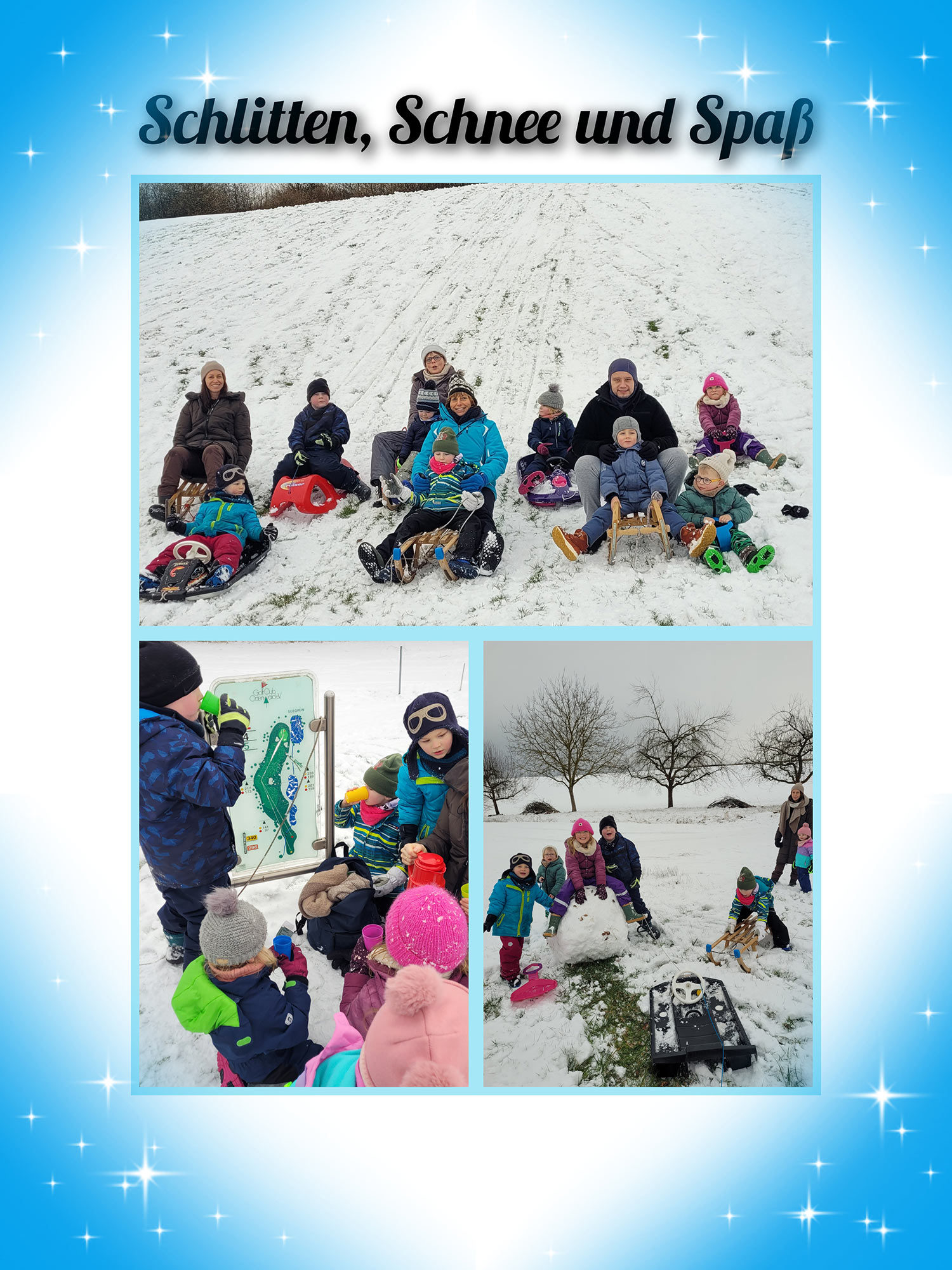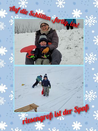 Ei was war das für eine Gaudi, als die Maxis endlich einmal wieder Schlitten fahren gehen konnten. Der Aufstieg durch den knirschenden Schnee hatte es in sich, aber er wurde durch eine rasante Talfahrt wieder belohnt. Bei der Abfahrt hörte man schon von weitem das freudige Kreischen der Kinder. Ein Riesenspaß hatten nicht nur die Kinder, sondern auch die Erzieher/innen.