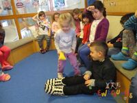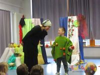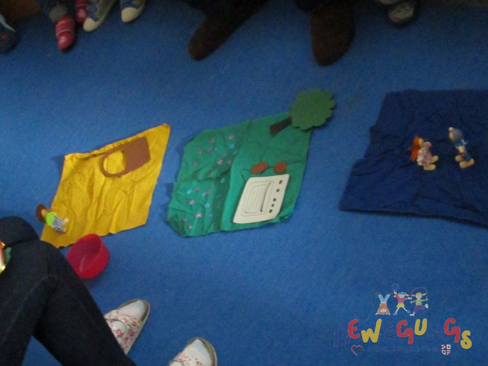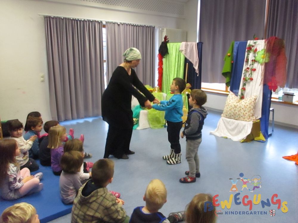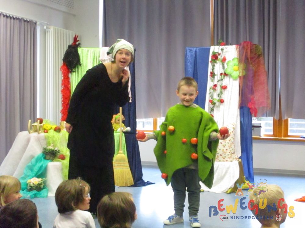 Im Morgenkreis haben wir das Märchen „Frau Holle“ aus unserem goldenen Märchenbuch vorgelesen, mit Biegepuppen und Legematerial erweckten wir das Märchen zum Leben, die Kinder spielten das Theater „Frau Holle“ und waren dabei Schauspieler und Erzähler.